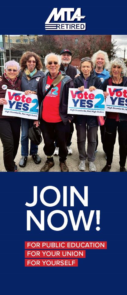 The Retired Members Committee is hosting a speaker series. These workshops, held on the first Wednesday of each month, provide a great opportunity to learn about important issues, gain new skills, connect with colleagues, advocate for our students and schools, and hear from MTA leaders.